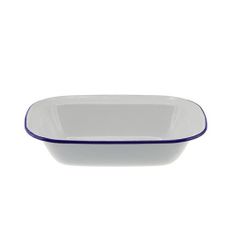 FALCON ENAMEL OBLONG PIE DISH WHITE WITH BLUE RIM 320x240x70mm