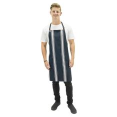 CHEF BIB APRON NAVY / WHITE STRIPE 860x860mm