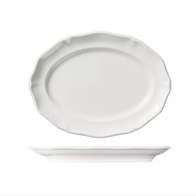 The creamy ivory colour enhances food presentation, with the scalloped edge framing the food beautifully and drawing the eye towards the center of the plate.
