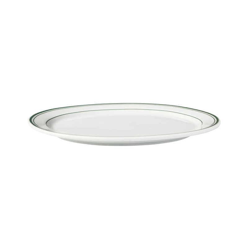 MW BISTRO OVAL PLATE 350mm GREEN RIM
