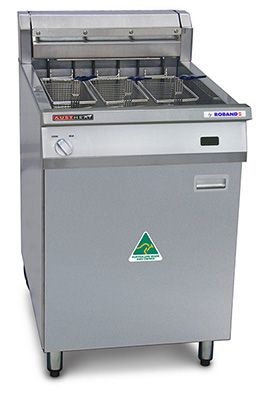 Introducing the Austheat Single Pan Three Basket Floor Model Fryer - the perfect solution for consistently delivering high-quality and high-volume fried food. With its 39 litre electric fryer and three baskets, this fryer is a great choice for stadiums, aged care facilities, mining sites, fish and chip shops, cafes and QSRs.