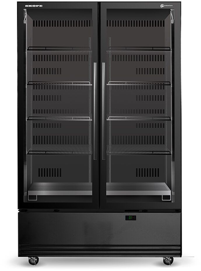 ActiveCore 3: durability, power economy and app-based control. Affordable double glass door commercial display fridge offering premium performance and quality, with 1079 litres of eye-level display space. It is well suited to restaurants / cafes / clubs / pubs / bars / quick service restaurants / convenience / petrol / supermarkets / hospitality / venues / accommodation / schools / medical / aged care.
