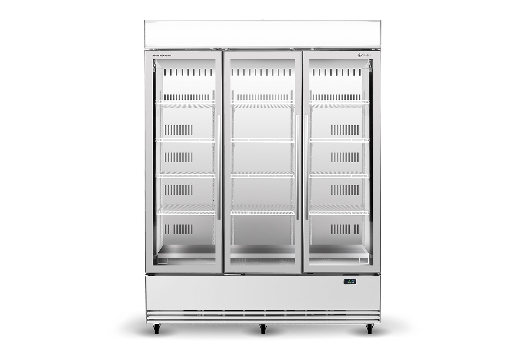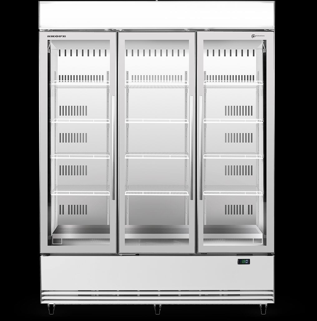 EPS7081 SKOPE ACTIVE CORE BOTTOM MOUNT FRIDGE SLIMLINE 3 GLASS DOOR / LED SIGN 1433L