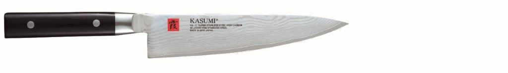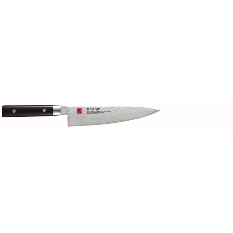 The Kasumi Chefs Knife is made of VG-10 high carbon stainless steel that has been developed especially for knives. The blades are hardened to Rockwell C59-60 degrees, and therefore, keep a sharper cutting edge longer than any other knives.