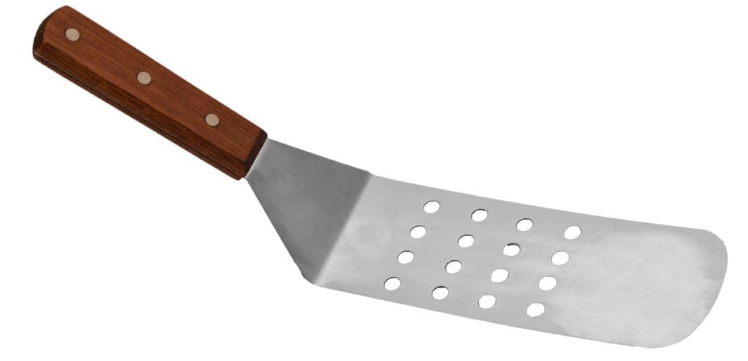 The wooden handle turner makes the perfect kitchen accessory for any commercial kitchen or even at home. Ideal for flipping pancakes, flipping burgers, scraping cook tops and more.